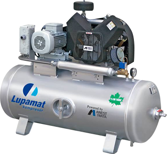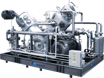 Oil free, high pressure, high-output, multi-stage, sliding bearing water cooled, V-type piston air compressor.
